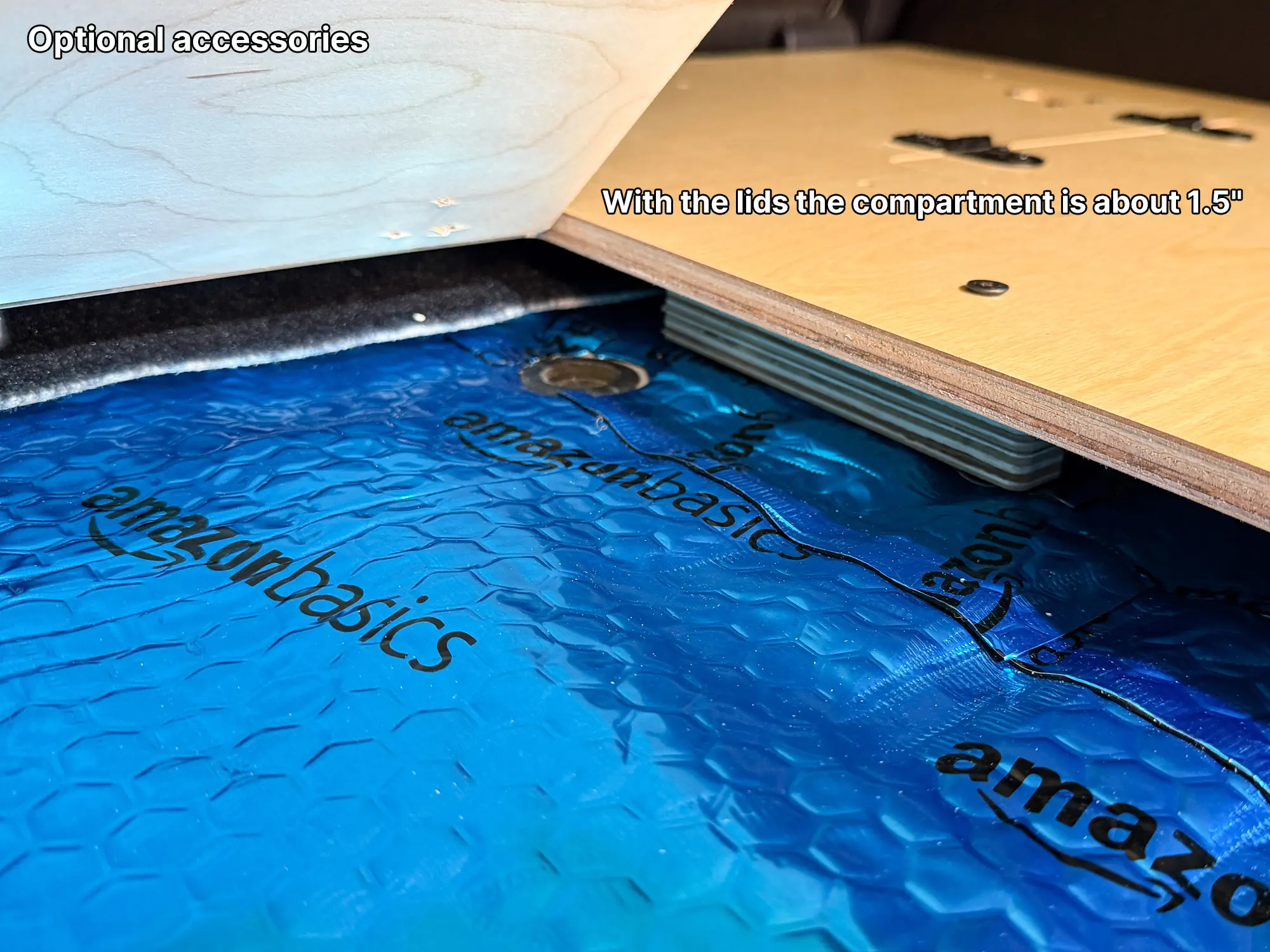 - If you want an additional storage compartment, choose the lids option; you can store some stuff in there. With the lids, the compartment is about 1.5".