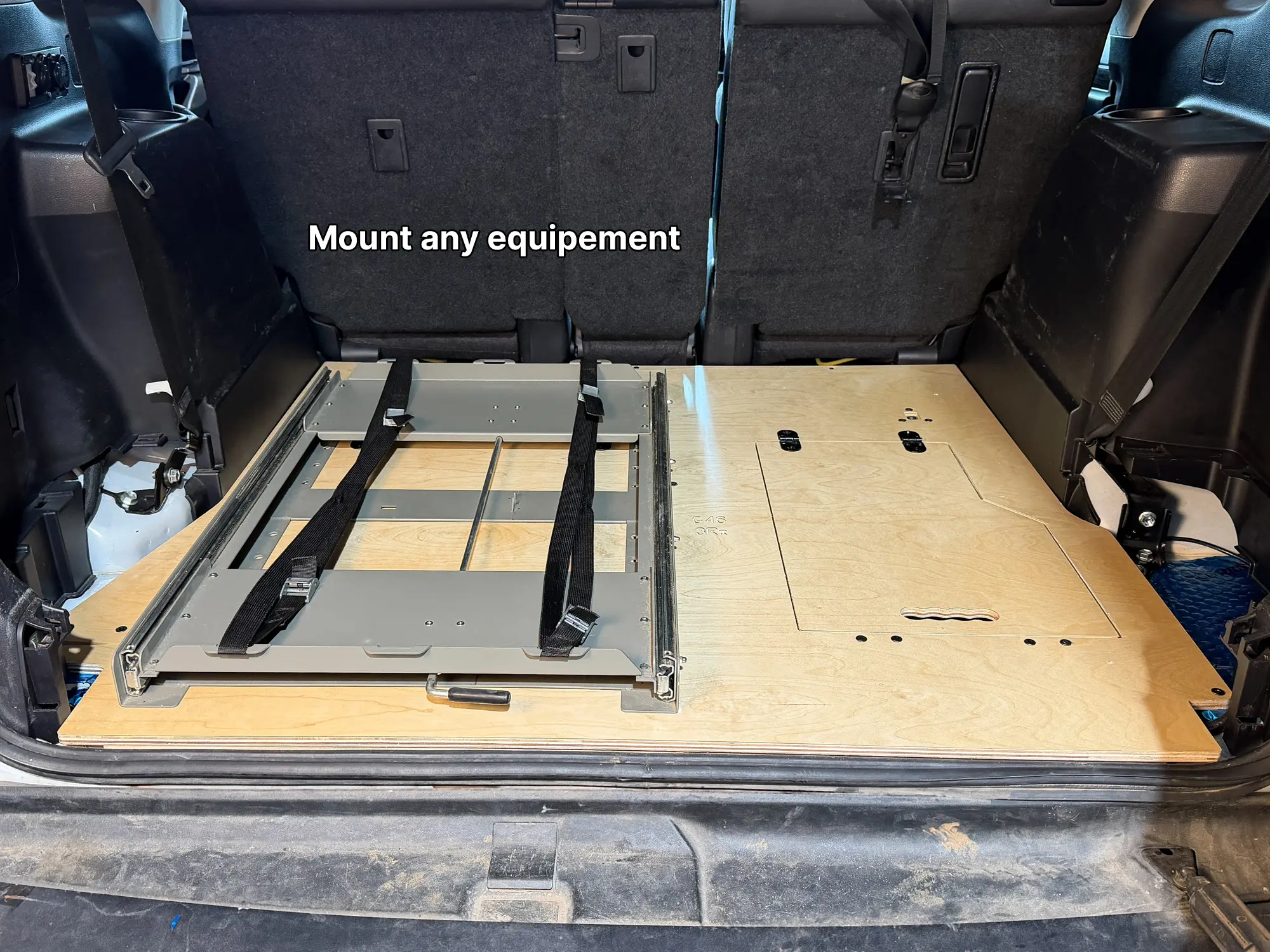 - The mounting base is made of plywood 0.5".It is installed on the floor of the trunk after removing the 3rd row seating in the Lexus GX 460 2010-2023. Perfect fit.